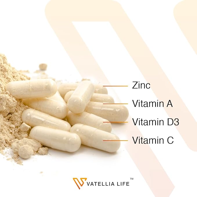 Vatellia Life Immune Up High-Absorption Vitamin C, D3, A + Zinc | Immune Support | Improve Cellular Health | Microbial Defense | 120 Capsules (60 Day Supply)