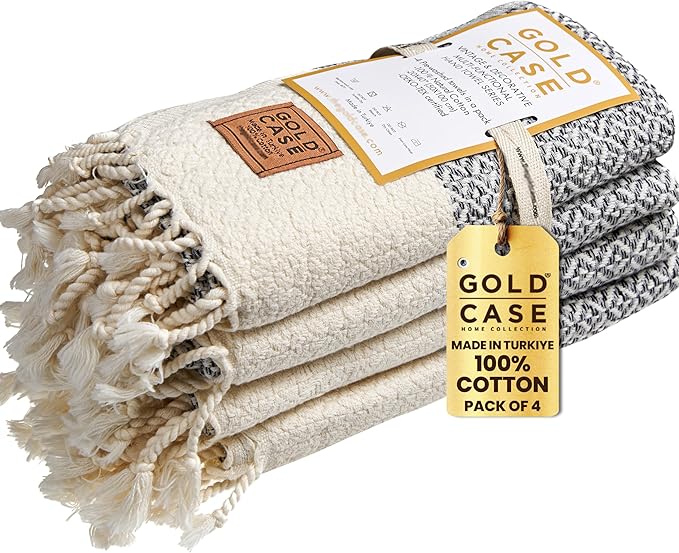 Gold CASE Turkish Hand Towels for Bathroom Set of 4 – 20 x 40'' – 100% Cotton Bathroom Towels – Aphrodite Kitchen Small Towel for Spa, Face, Tea & Dishcloth – Decorative Patterned Weave – Grey