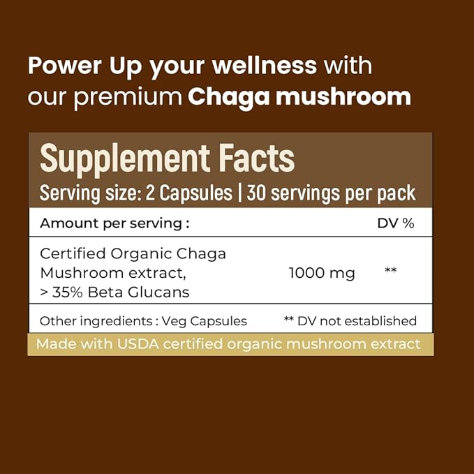 - Chaga mushrooms are an anti wellness powerhouse of antioxidants that support overall wellness & vitality. Its bio compounds such as triterpenoids, flavonoids etc help support overall health & wellness.