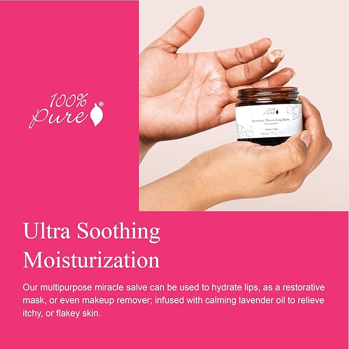 100% PURE Intensive Nourishing Balm Face & Body Cream Moisturizer Luxuriously Thick Replenishment Powerful Hydration & Dry Skin Care - Vegan - 1.7oz