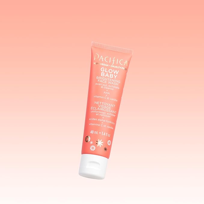 Pacifica Mini Glow Baby Brightening Facial Cleanser 1.4 oz – Vitamin C & Glycolic Acid (AHA) Face Wash– Daily Cleanser for Anti-Aging Exfoliating for Smooth, Even Glowing Skin Vegan Clean Beauty