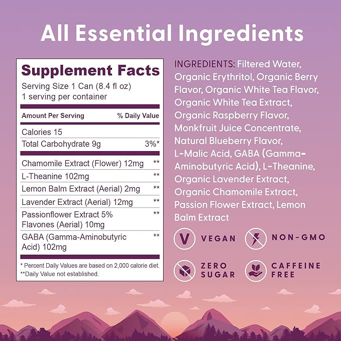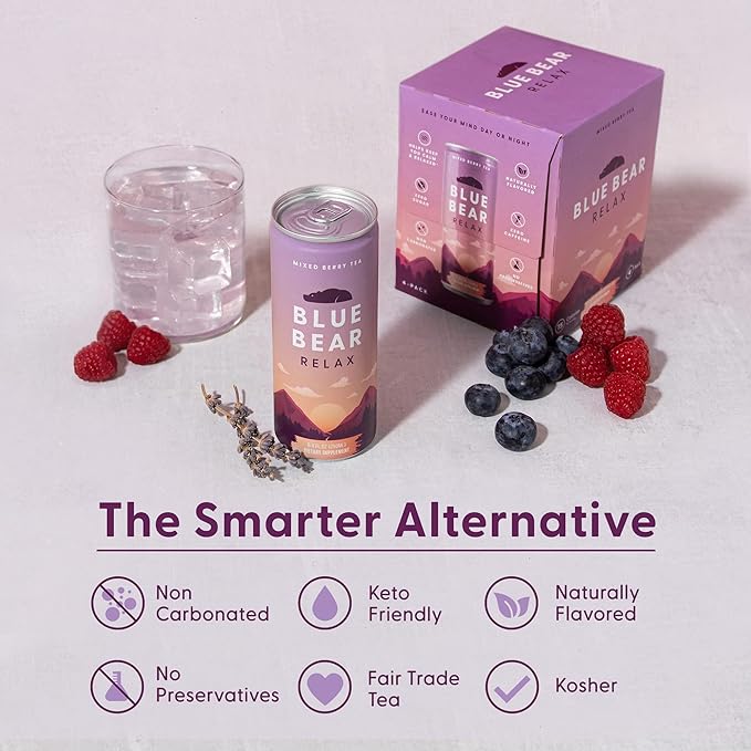 - READY-TO-DRINK CALMING TEA: Experience a new daily ritual whenever or wherever with a soothing , delicious, lightly sweetened mixed berry iced tea that helps unwind your body and mind so you can stay calm and relaxed.