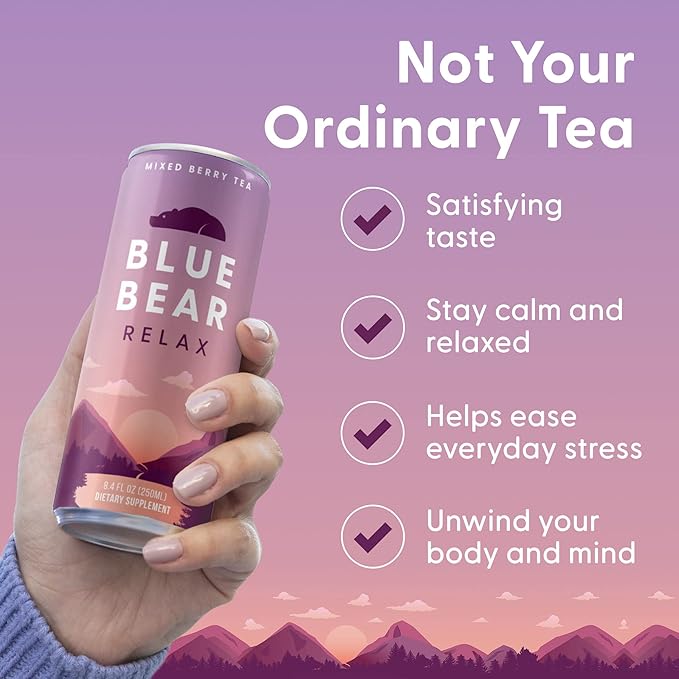 - CONVENIENT RELAXATION SOLUTION*: Say goodbye to multi-step tea processes and powders. Blue Bear is a better, easier alternative than consuming chemical-filled stress relief supplements and pills or mixing messy preservative-filled powders.