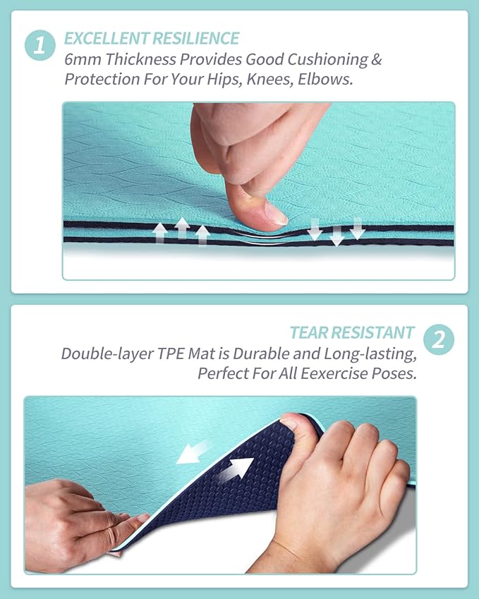 - DOUBLE-SIDED NON SLIP DESIGN: The design of anti-skid texture on both sides and Hexagon texture(unique patented non-slip pattern)on the back features good cushioning and optimal grip, ensuring that you stay in place during even the challenging poses, allowing you to focus on your breath and movement. Our non slip yoga mat is suitable for hot yoga, pilates, and any indoor or outdoor fitness routines