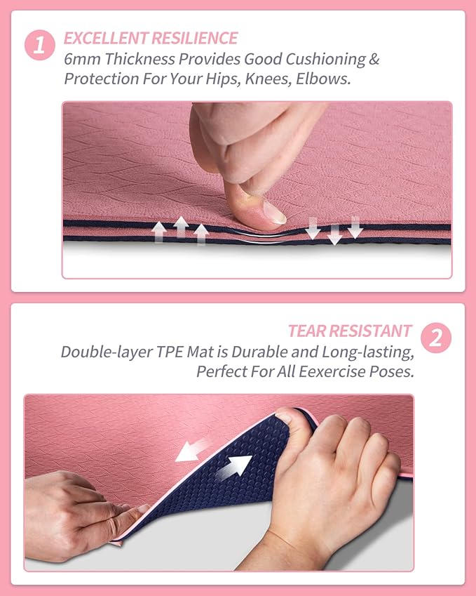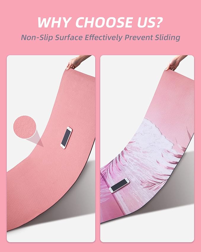 - DOUBLE-SIDED NON SLIP DESIGN: The design of anti-skid texture on both sides and Hexagon texture(unique patented non-slip pattern)on the back features good cushioning and optimal grip, ensuring that you stay in place during even the challenging poses, allowing you to focus on your breath and movement. Our non slip yoga mat is suitable for hot yoga, pilates, and any indoor or outdoor fitness routines