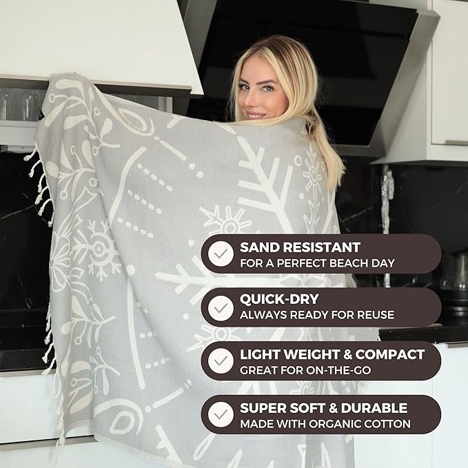 - The Only Towel You Need: Our oversized (37x67) Turkish beach towel transforms into a cozy throw, picnic blanket, scarf, stylish sarong, or boho tapestry—perfect for travel, beach days, or relaxing at home.