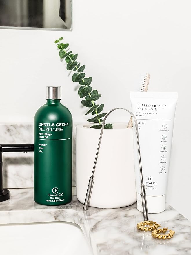 Terra & Co. Gentle Green Oil Pulling for Teeth and Gums - Vegan Natural Mouthwash No Alcohol or Fluoride to Improve Oral Health - Made with Cold Pressed Plant Oils and Nano Hydroxyapatite | 6.75 oz