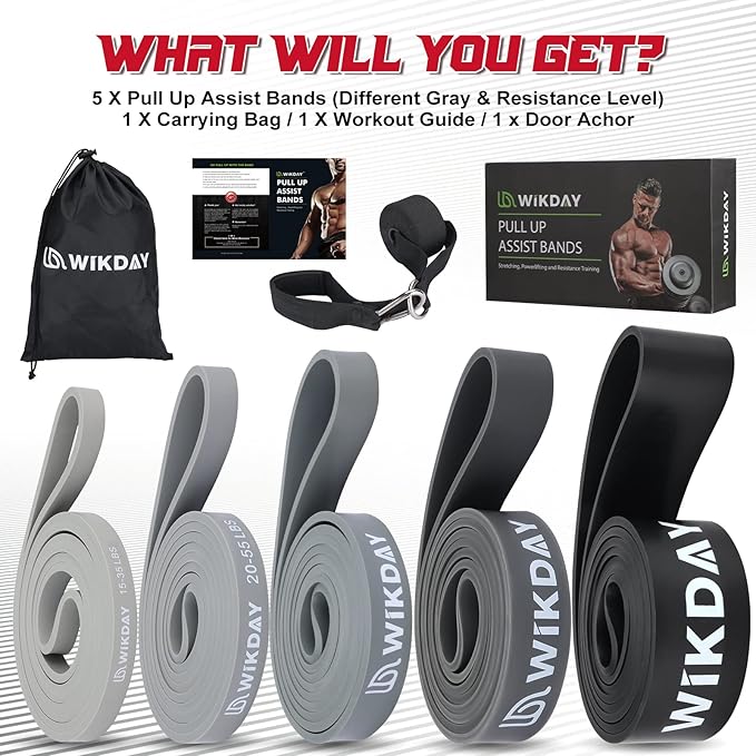 - Wide Applications: This professional exercise bands comes with 5 different levels of resistance with a new door anchor. #1Gray(15-35 lbs), #2Gray(20-55 lbs), #3Gray(25-75 lbs), #4Gray(35-90 lbs), Black(60-170 lbs). They are very suitable for beginners, fitness enthusiasts, athletes and other people
