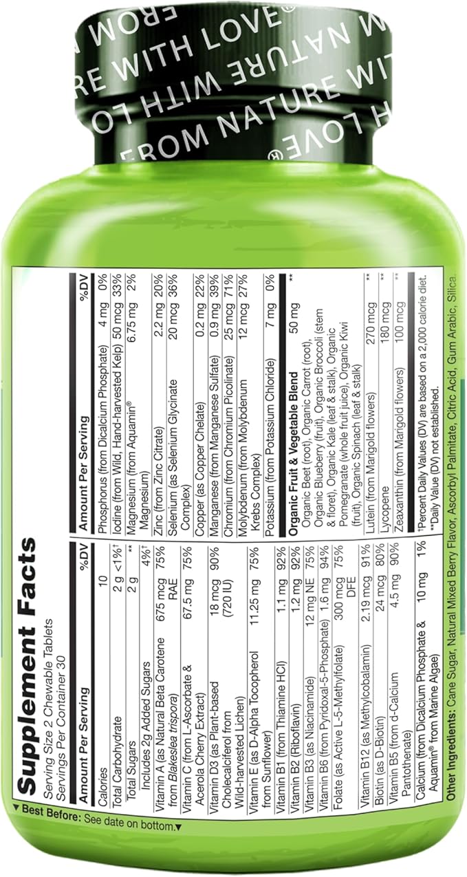 - NUTRIENTS FROM NATURE: Our children’s multivitamin is made with plant-based vitamins, minerals, and carotenoids, including vitamin D3 from lichen, vitamin E from sunflower, iodine from kelp, and lutein and zeaxanthin from marigold flowers.