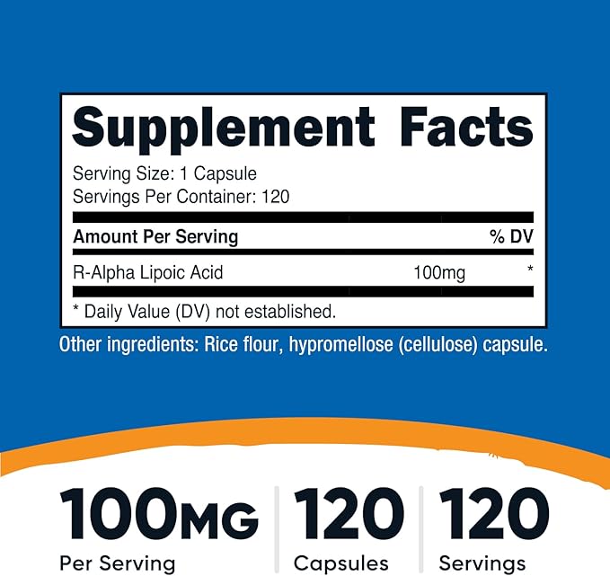 - 100mg of R-Alpha Lipoic Acid (R-ALA) Per Capsule