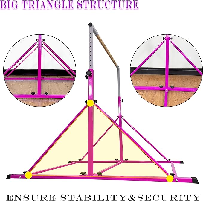 • Professional Crossbar: Gymnastics bar Crossbar is made of fiberglass with wood cover, compared with wood, it is more durable and flexible, kids have a professional feeling when they use it