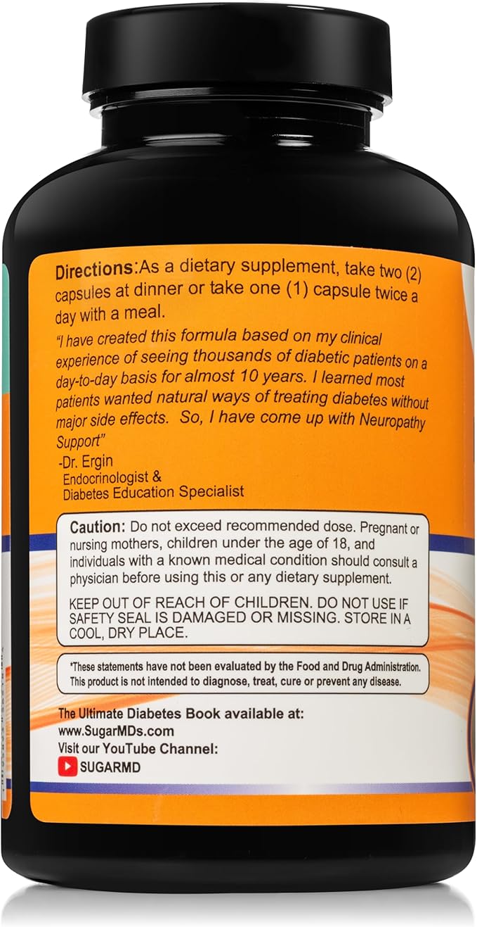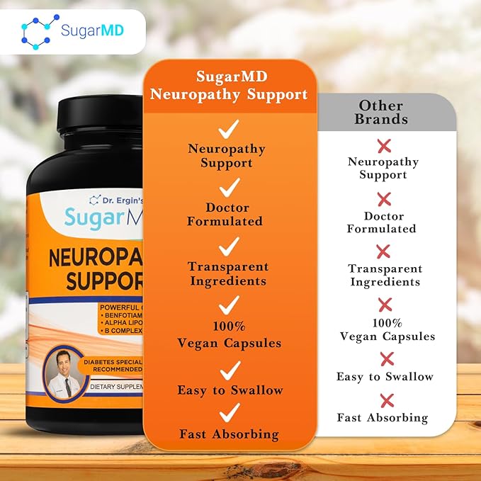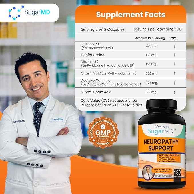 - 𝗗𝗼𝗰𝘁𝗼𝗿 𝗙𝗼𝗿𝗺𝘂𝗹𝗮𝘁𝗲𝗱: All SugarMD products, including neuropathy supplements, are formulated by a Cleveland Clinic graduate and a well-known medical doctor. extensive research and thousands of hours working with patients set us apart from other brands. With a focus on your health and happiness, SugarMD neuropathy support formula is vegan, non-GMO & allergy-free and contains no soy, gluten, or preservatives.