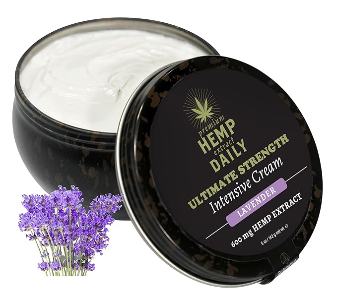 Premium Hemp Extract Daily Ultimate Strength Intensive Cream - Muscle, Knee, Joints, Back, Neck and Shoulder Rub - Organic Ingredients, Topical Lotion with Essential Oils - Lavender, Single 5oz