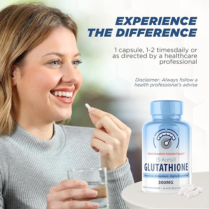 - MASTER ANTIOXIDANT FOR NATURAL CELLULAR DEFENSE: Fortify your body's defenses with a potent master antioxidant that counteracts environmental stressors. Maintaining cellular health can be challenging- each s-acetyl l-glutathione 300 mg serving of our s acetyl glutathione supplement provides crucial support using acid resistant s-acetyl l-glutathione capsules, helping you feel balanced and resilient, addressing the challenges of sustaining daily health amidst external pressures.