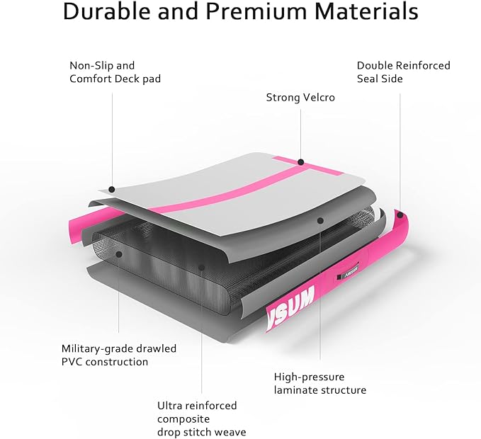 - Professional Tumbling Mat: AWSUM Air mats is made of 600D Filament Grade and high-quality PVC tarpaulin. All seams are made by handwork. Gymnastic mat Outer layer of mat is made of double-layer waterproof tarpaulin, better water-resistance. Tumble mat Inside is made of V-drop stitch technology, better flexibility