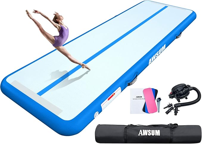 AWSUM Inflatable Air Gymnastics Mat 10ft/13ft/16ft/20ft/23ft Training mat 4/8 inches Thick tumbling mat with Electric Pump for Home/Gym/Outdoor