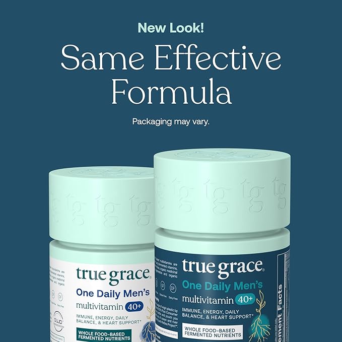 True Grace Men's 40+ One Daily Multivitamin Fermented Minerals, Organic Adaptogens & Mushrooms Whole Body Balance Immune, Endurance, Bone & Heart Support Supplement - Non-GMO - 30 Vegan Tablets