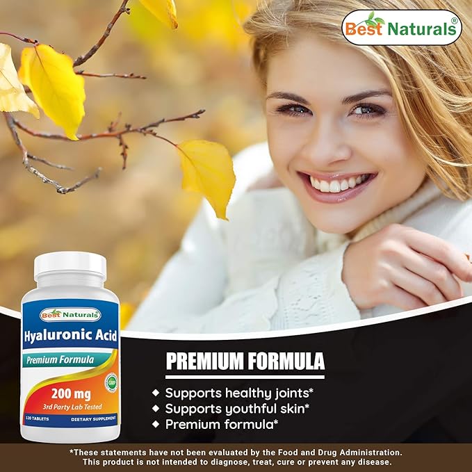 Best Naturals Hyaluronic Acid 200 mg 120 Tablets (Non-GMO, Gluten Free) - Promotes Youthful Healthy Skin & Healthy Joint Function (120 Count (Pack of 3))