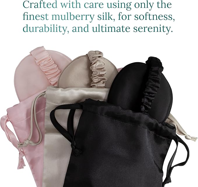- BLOCK LIGHTS PERFECTLY: Slip this silk eye sleeping mask on and enjoy complete blackout. Our silk blindfold bring easy and comfortable sleep at any time. It offers you a mid-night's environment so you can have a blissful nights sleep. Blind fold allows you to eliminate light even use the light color eye mask. Perfect for shift workers or travel.