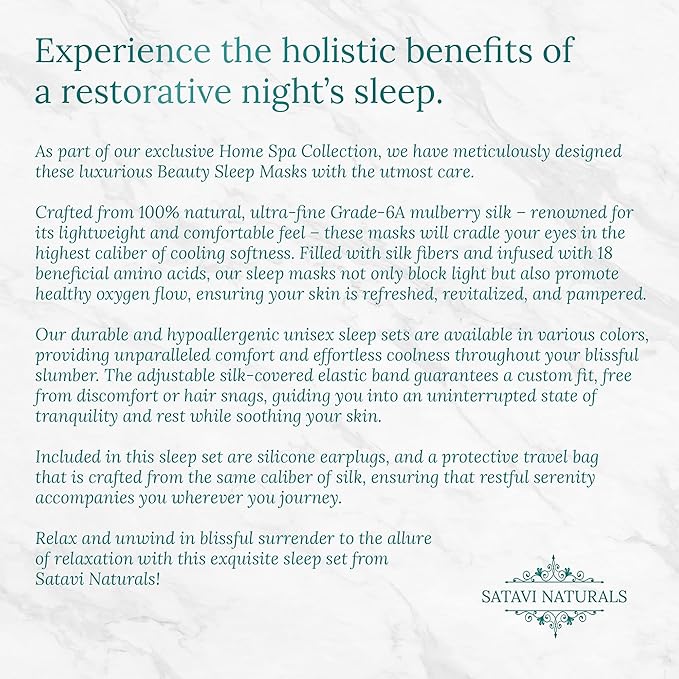 - EAR PLUGS & LUXURY BAG INCLUDED: Silk eye mask for sleeping is equipped with a separate storage bag and includes set of Silicone Gel Earplugs made with ultra-soft and high-grade silicone material with a super comfortable shape that adjusts to your ear. These multi-use earplugs are great for sleeping, swimming, bathing, snoring, studying, travel, loud events, mowing, concerts, flying discomfort, all noisy environments.