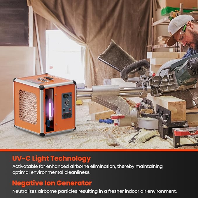 - Newly Upgraded 5-Layer Filtration System: The air scrubbers have 5-stage air filtration system with Merv-10 pre filter, H13 Hepa/activated carbon, UV-C light and negative ion. It can capture remove 99. 97% of particles that have a size greater than or equal to 0. 3 micrometers. Suitable for purifying the bad air from in a hospital room or children's bedrooms. Using on dusty construction sites, mainly interior renovation and demolition.
