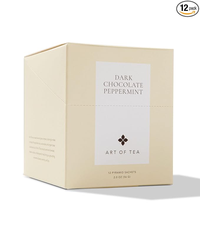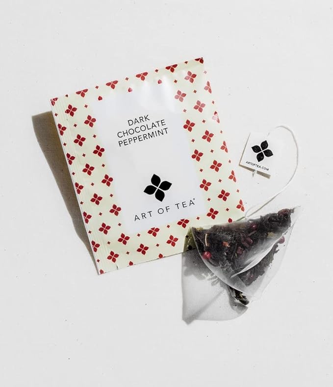 - DELICIOUS EXPERIENCE – This Art of Tea Bulk pack includes 12 pyramid sachets of Dark Chocolate Peppermint dessert Tea. Do you crave the tastes of sweet chocolate and bold mints year-round? If so, do we have the chocolate tea bags for you! Our Dark Chocolate Peppermint will make you feel like you’re sitting in front of a log fire cuddling up for a great night.