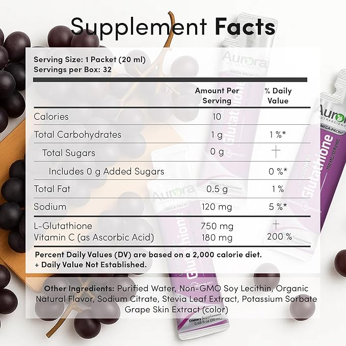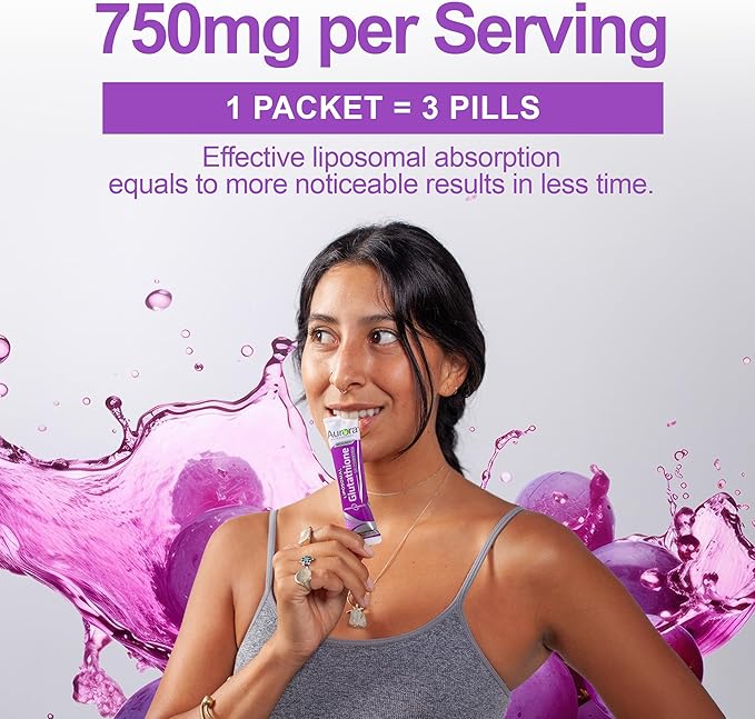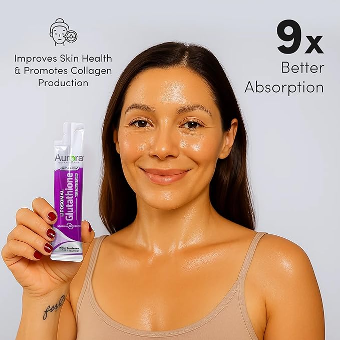 Aurora Nutrascience Mega-Liposomal Liquid Glutathione, Immune & Antioxidant Gut Health Support Supplement, 750 mg per Serving, Non-GMO, Sugar-Free, 32 Single Serve Packets