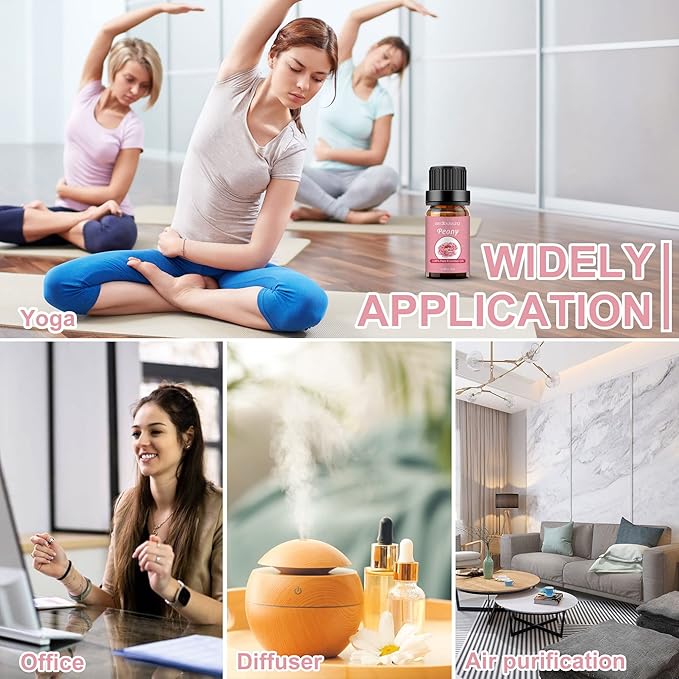 - Versatile Uses: Peony aromatherapy oils are used for aromatherapy,bath, saunas, air freshening, or soaps,etc.Suitable for diffuser, clean, massage, perfume, home care (bedroom, living room, bathroom, study room), office, outdoors, campground, yoga room, car and spa,etc.