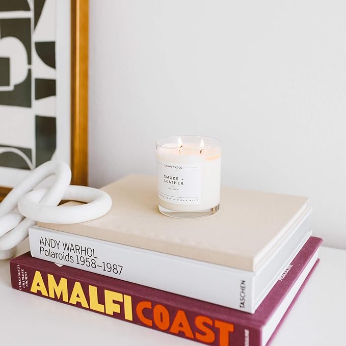Calyan Wax Co. Smoke & Leather 2 Wick Scented Candle - 37 Hour Burn - Luxury Non Toxic Soy Wax Candles - Long Lasting Large Glass Jar Candle for Home - 8.8oz