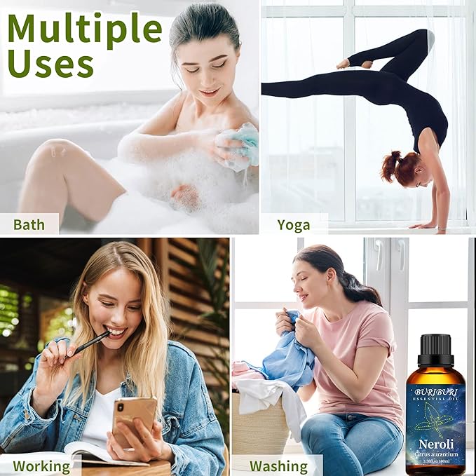 BURIBURI 100ML Neroli Essential Oil Gifts Set, 100% Pure Orange Blossom Oils Undiluted Aromatherapy Neroli Oil 3.38fl.oz for Soap, Candle Making, Massage, Diffuser, Humidifier