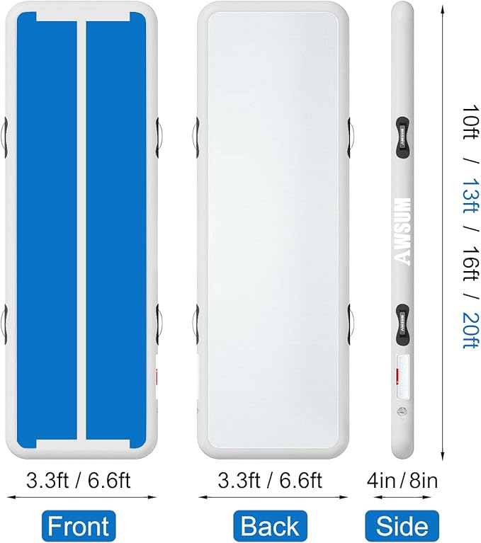AWSUM Inflatable Air Gymnastics Mat 10ft/13ft/16ft/20ft/23ft Training mat 4/8 inches Thick tumbling mat with Electric Pump for Home/Gym/Outdoor