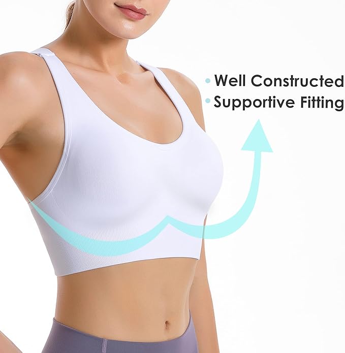 Evercute Sports Bra for Women Padded Medium Support Criss Cross Strappy Bras Seamless High Impact Yoga Exercise Athletic Bras