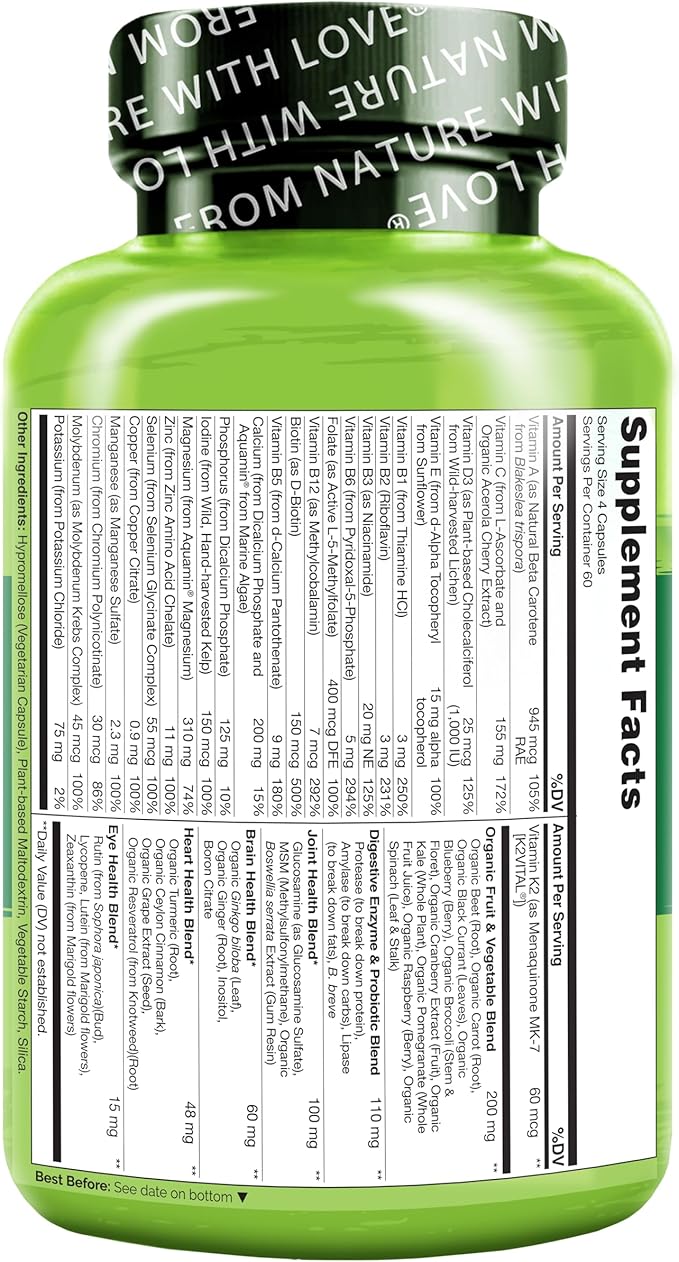 - WHOLE FOOD NUTRITION: Naturelo multivitamins are made with real, organic fruits and vegetables for that whole food nutrition your body craves, complete with nutritional cofactors that help your body recognize and absorb the nutrients.