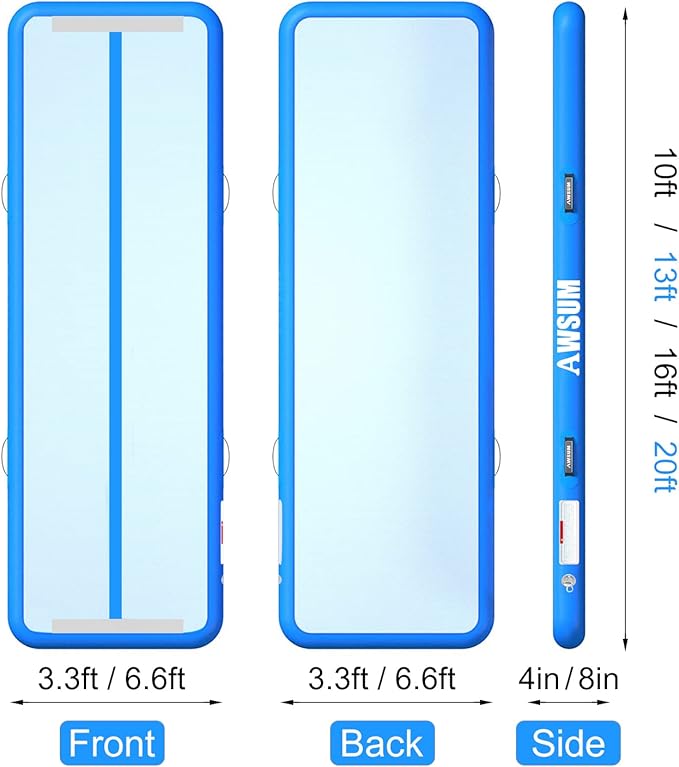 AWSUM Inflatable Air Gymnastics Mat 10ft/13ft/16ft/20ft/23ft Training mat 4/8 inches Thick tumbling mat with Electric Pump for Home/Gym/Outdoor