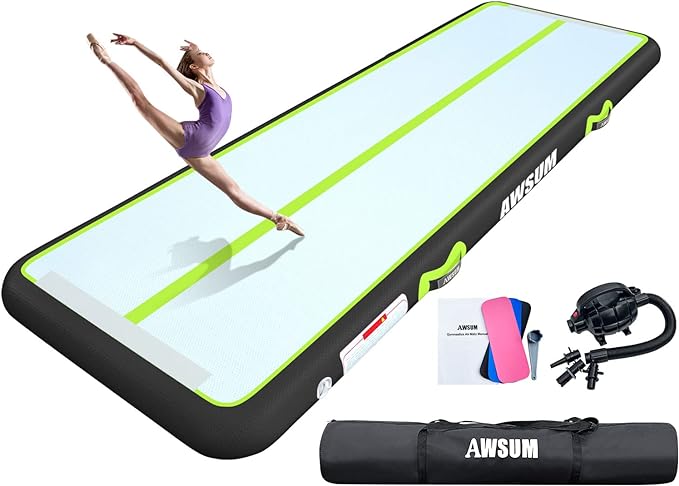 AWSUM Inflatable Air Gymnastics Mat 10ft/13ft/16ft/20ft/23ft Training mat 4/8 inches Thick tumbling mat with Electric Pump for Home/Gym/Outdoor