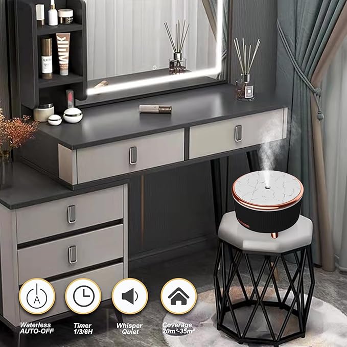 - 【Relax Your Mood】 The essential oil diffuser humidifiers features an elegant marble grain, electroplated rose gold and frosted surface design,make aromatherapy diffuser look like a beautiful and romantic decoration. Diffuser is a perfect decor used at homes, office, spa decor or meditation decor. You can brighten your space and boost your mood with these modern essential oil diffusers