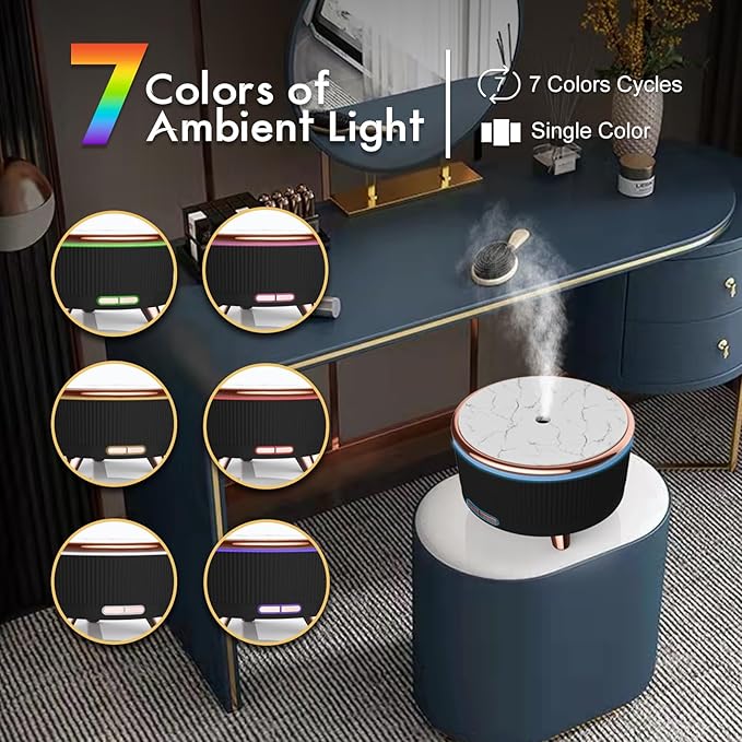 - 【Quiet Fragrance Diffuser】Led diffuser adopted ultrasonic technology to make its working sound<25dB. Ultrasonic diffuser gives out ultra fine and smooth mist which can soften and moisten dry and chapped skin in winter, create a quiet and warm atmosphere for you, help you benefit from it. Room diffuser will automatic power off when water used up, You don't worry about dry heating without water in a relaxed state of mind and body, sleep peacefully all night.