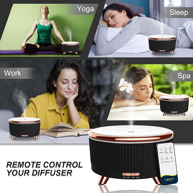 Diffusers for Essential Oils Large Room, 500ml Aromatherapy Diffuser Cool Mist Humidifier with Remote Control,7 Colors Lights & 3 Mist Mode Waterless Auto Off for Women Office Home Black