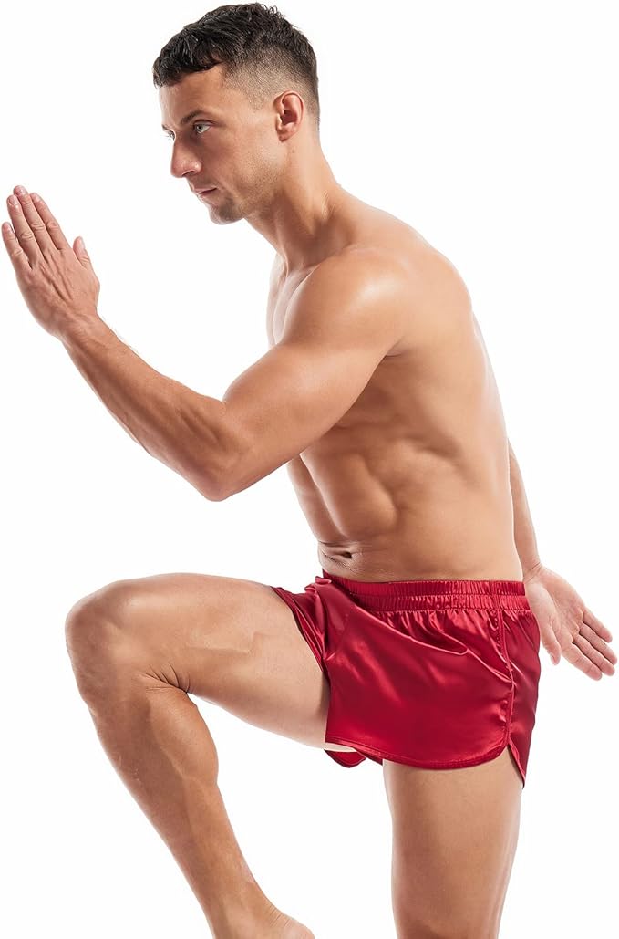 AMY COULEE Mens Satin Shorts Silk Boxers Sexy Split Side Lounge Shorts 3 Inch Pajama bottoms