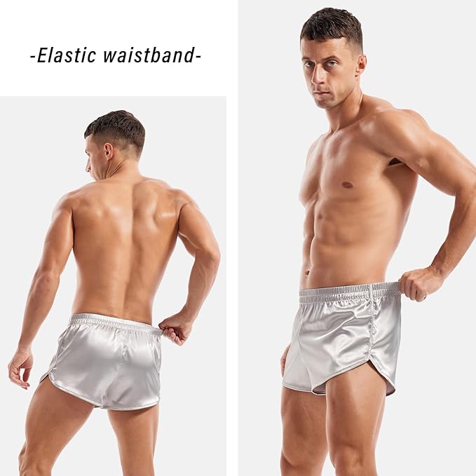 AMY COULEE Mens Satin Shorts Silk Boxers Sexy Split Side Lounge Shorts 3 Inch Pajama bottoms