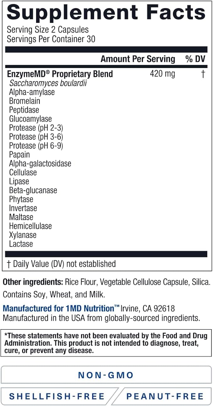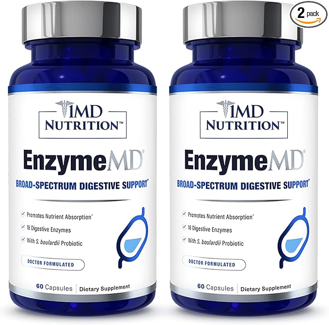 1MD Nutrition EnzymeMD - Digestive Enzymes Supplement - Doctor Formulated | 18 Plant-Based Enzymes - Gas & Bloating Support | 120 Capsules (2-Pack)