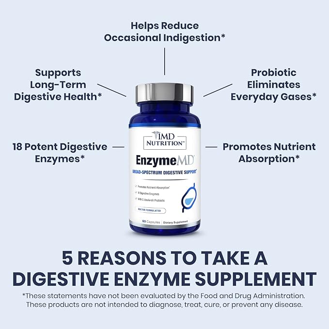 - Feel Good About What You Eat: Enjoy what you eat without the worry. EnzymeMD helps aid proper breakdown of food to promote optimal digestion while reducing gas production.*