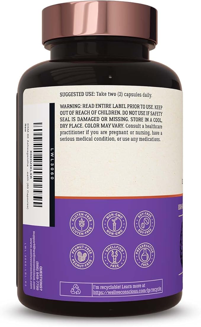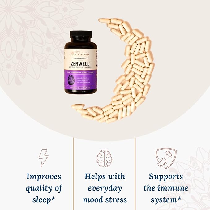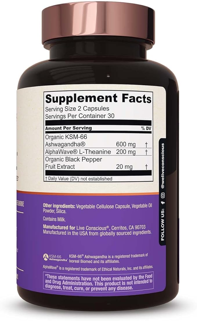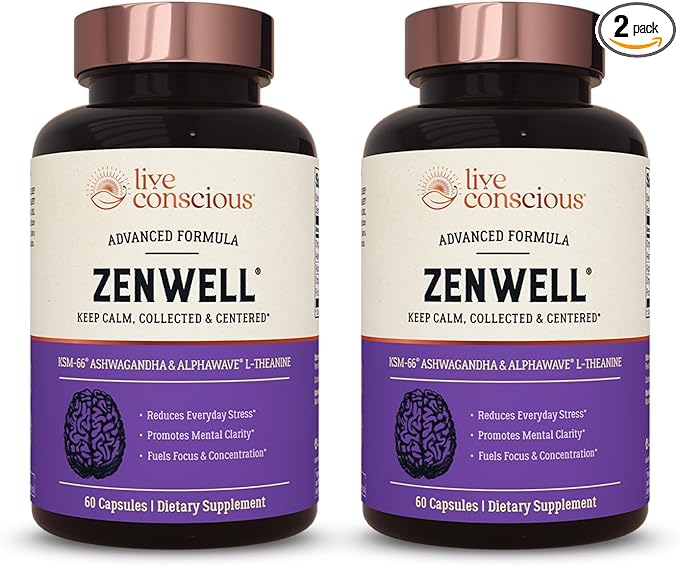Live Conscious KSM-66 Ashwagandha Supplement w/L Theanine & AlphaWave - ZenWell Everyday Stress Relief, Cognitive, Brain Health - Ashwagandha for Men & Women - 60 Capsules (2-Pack)