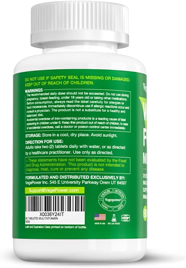 - โจFinest Quality & Made in the USA: Yes! Quality and Safety Matter to us! Here at Vegepower, we strive to create supreme quality and useful products. That's why our whole food multivitamin formula was created by the top US healthcare professionals and made in the USA. All Whole Food Multivitamins are non-GMO and vegan-friendly, with no added preservatives, coloring, or flavoring, and no gluten, dairy, or soy.
