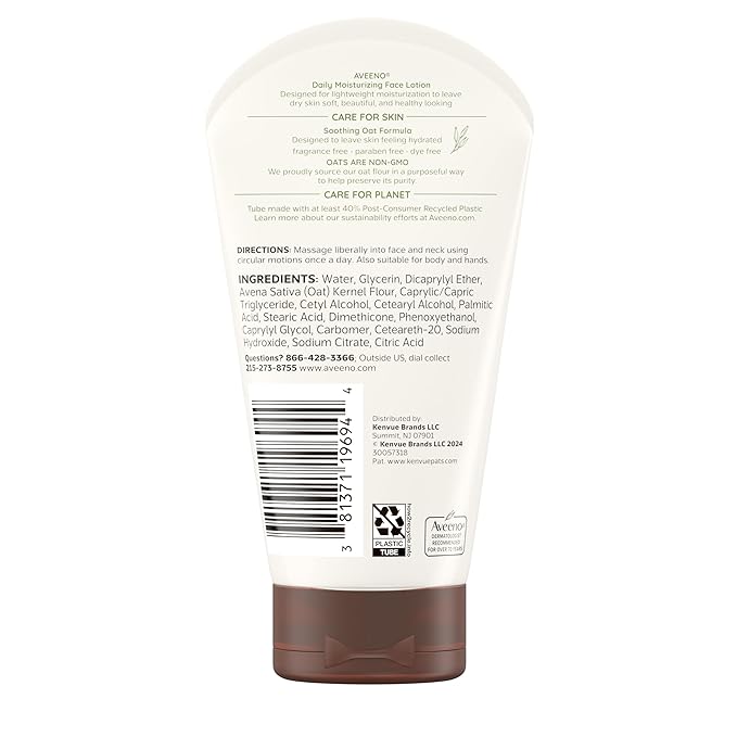 - Soothing prebiotic oat: Lightweight daily face lotion absorbs quickly and feels non-greasy; replenishes moisture & is designed to leave skin feeling hydrated. Formula is free of fragrances, parabens & dyes & is suitable for sensitive skin
