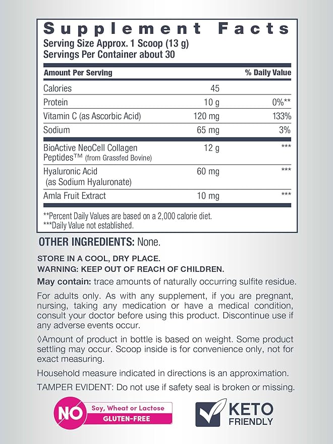NeoCell Super Collagen Peptides | 13.7 oz | Grassfed Bovine | With Hyaluronic Acid and Vitamin C | Non-GMO, Gluten & Soy Free Supplement