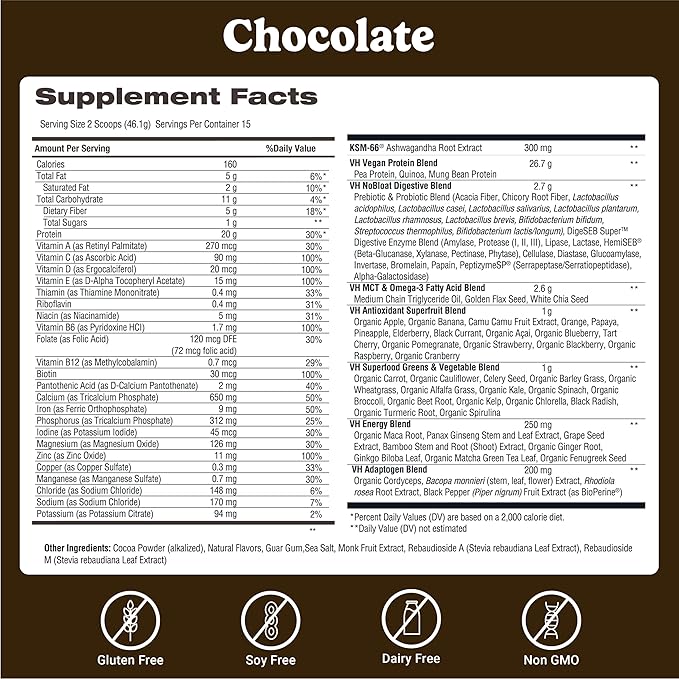 - MORE THAN A MEAL REPLACEMENT – An all-in-one vegan protein powder loaded with omega-3s, MCT, pre + probiotic fiber, adaptogens, digestive enzymes, electrolytes, functional mushrooms, Clinically proven with 300 mg of KSM-66 ashwagandha, and more.