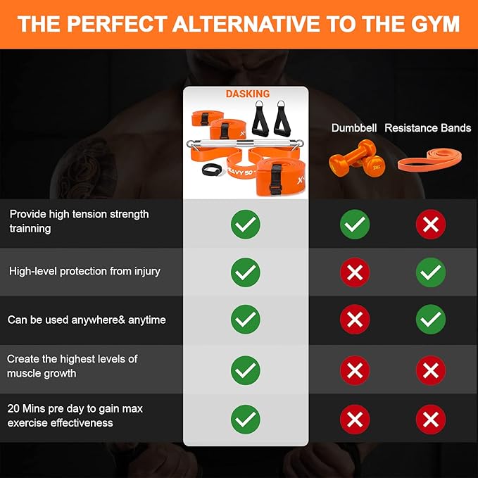 - ๐๏ธโโ๏ธ [7+ Gym Machines in 1 Kit] Replace bulky equipment! Create over 7 configurations: Bar + Bands (bench press/rows) Handles + Bands (bicep curls) Door anchor + Bands (lat pulldowns) Mix with your existing gear for endless routines!