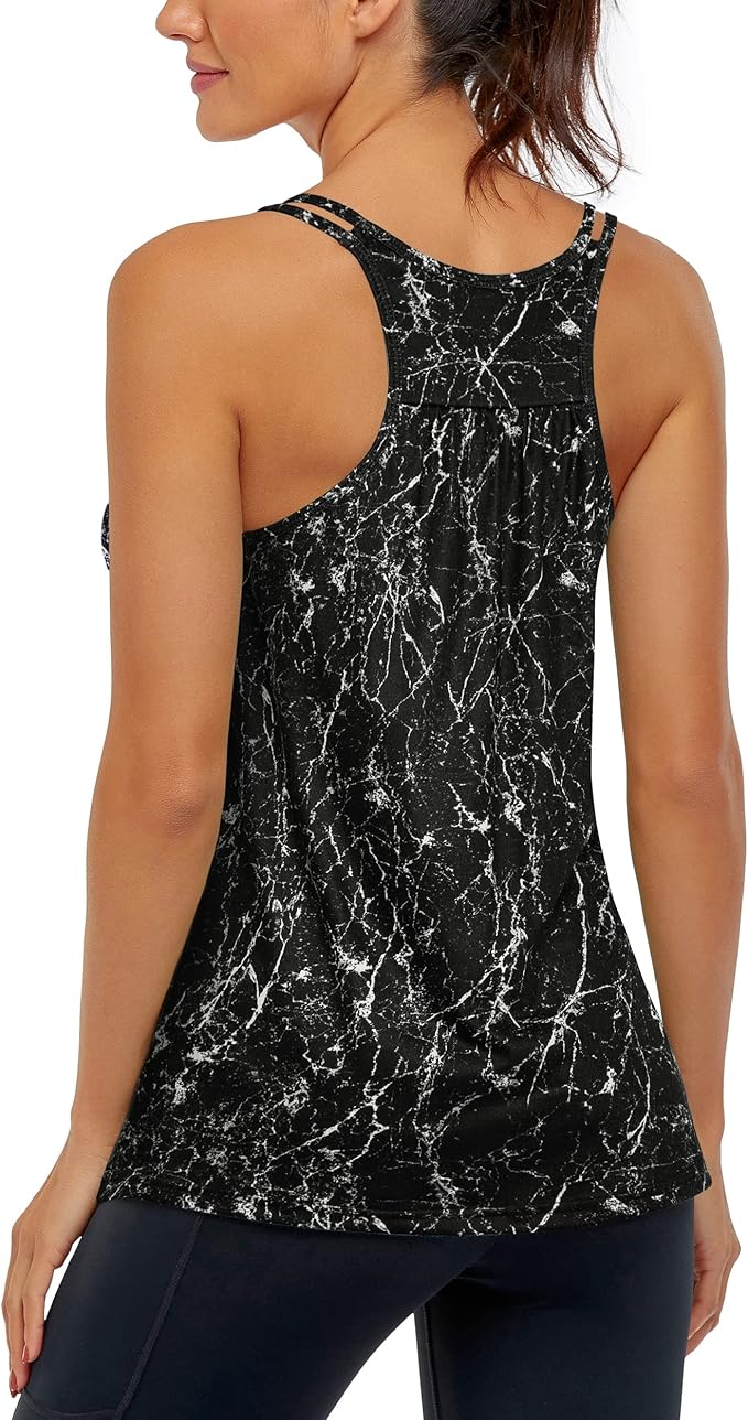 - √Double Straps: Yoga workout tank top with smooth spaghetti strap racerback design allows natural range of motion,easy to get on & off.