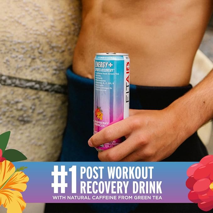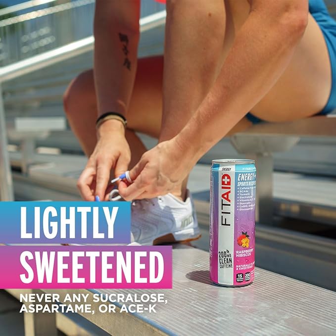 FITAID ENERGY, 200mg Natural Caffeine, Keto, Raspberry Hibiscus, Optimum Performance Formula: BCAAs, Quercetin, Electrolytes, Omega-3s, Paleo, Vegan & GlutenFree, 12 Fl Oz cans (Pack of 24)